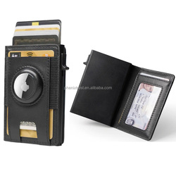 Portafoglio sottile in pelle resistente cinturino elastico in pelle tasca anteriore Air Tracker Tag portafoglio
