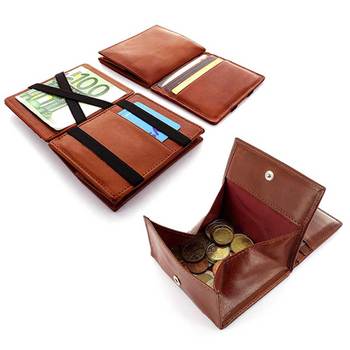 ヴィンテージレザーマジックウォレットスマートエラスティックバンドウォレットバックコインバッグ付き